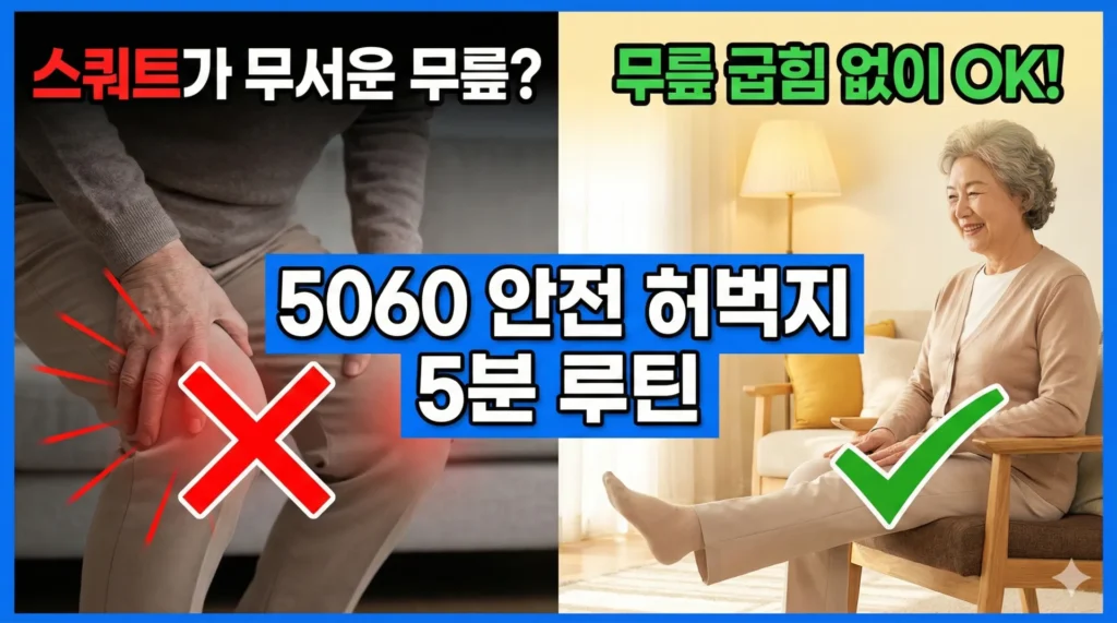 특히 무릎이 예민한 시기에는 깊은 스쿼트처럼 관절 압박이 큰 동작보다, 무릎 각도를 거의 바꾸지 않는 루틴이 더 꾸준히 이어지기 쉽습니다. 꾸준함이 곧 근력이고, 근력이 무릎을 보호하는 “안전벨트”가 됩니다.